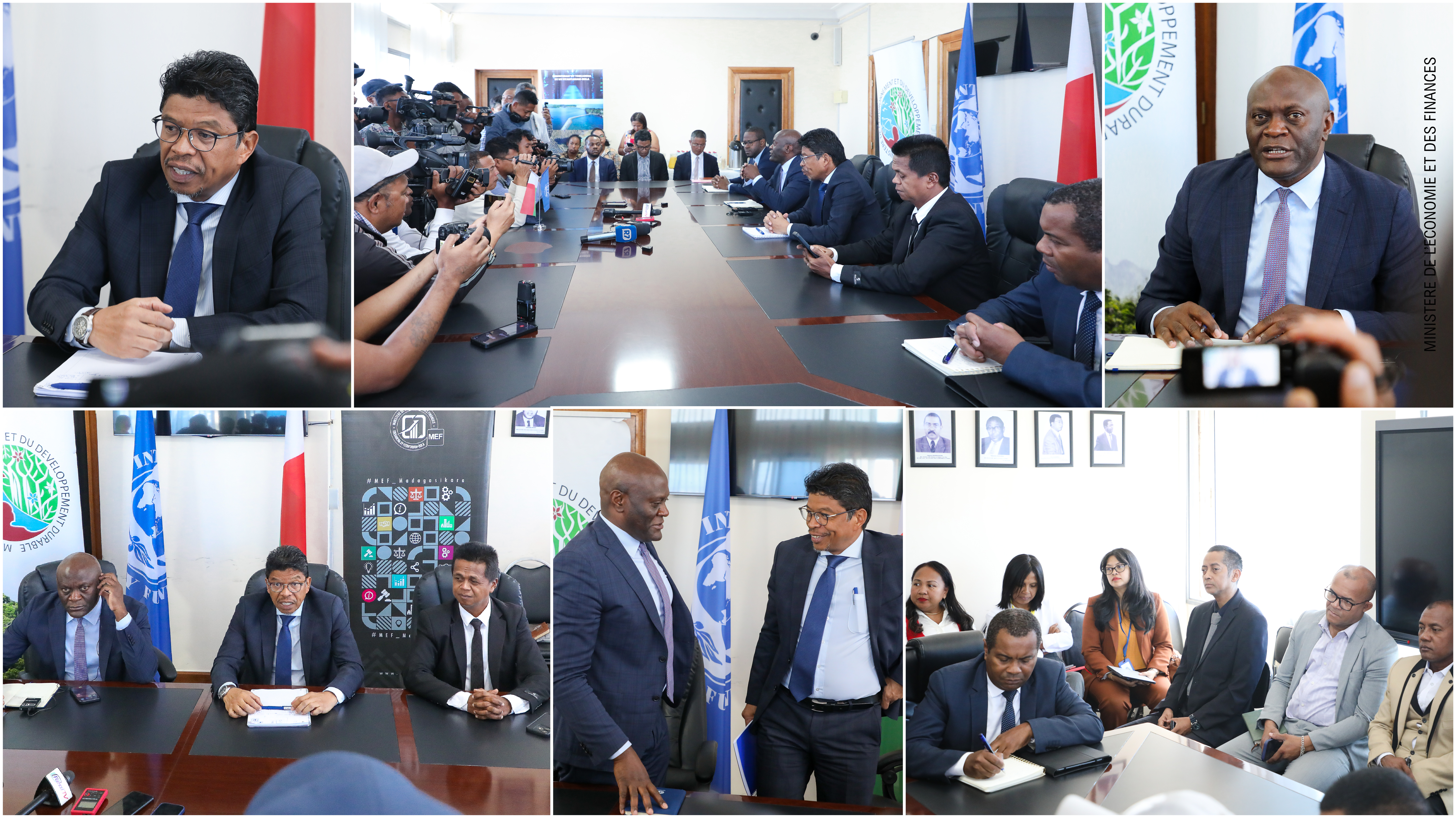 Le Ministère de l’Économie et des Finances (MEF) avec le Fonds Monétaire International (FMI) ont tenu ce jour un point de presse pour présenter les conclusions de la 3ᵉ et 4ᵉ revue des programmes Facilité Élargie de Crédit (FEC) et Fonds pour la Résilience et la Durabilité (FRD). Ces programmes traduisent les priorités du gouvernement malgache et visent à soutenir le développement économique tout en renforçant la résilience du pays face aux chocs internes et externes.